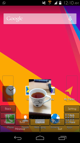 You can see that the image is previewed in a small area and you can tap on the ‘Capture’ button to take an image. When an image is captured you will have a toast notification as seen below. You can also use the burst, auto, and face mode to capture images.
