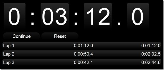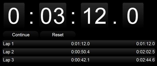 StopWatch From Matej Konecny is a free Chrome app which offers a pretty nice stopwatch on Google Chrome browser. This stopwatch app is a very simple and easy to use on Chrome. Head over to the app page of your Chrome browser and you can easily launch the StopWatch app. The good part of this StopWatch app is its laps option. You can capture the laps in between the running StopWatch. When you launch the app, the stopwatch will be opened in a separate new tab on the browser. The background of the Chrome app is purely black which looks nice and simple while running on Chrome browser.