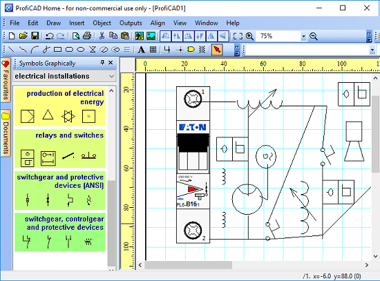 ProfiCAD is a very good and feature rich electrical diagram software for Windows. However, this software is free for only non-commercial use and has some limitations in the free version. With this software you can not only draw the electrical and control circuit diagrams, but you can also draw the electrical appliances design for a building or home. It has a lot of tools and electrical instruments that you can include in your drawing. It offers an intuitive workspace where you can create the diagram and export that as DXF file or a PNG image.