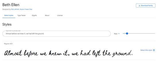 Yet another font from Google, that has an authentic feel to its script. Designed by Rob Jelinski, it is well suited for a variety of projects and is freely available for personal and commercial use.