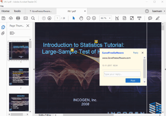 Foxit Reader is another fantastic software to add comments to PDF file. It provides a separate “Comment” tab or menu using which you can add comments to different parts of a PDF page or multiple pages. Like Adobe Acrobat Reader DC, it also lets you open multiple PDF files on its interface and a separate tab is opened for each PDF. After that, you can use Comment menu, click on a particular part and add your custom comment. You can also place comment box on any part of PDF page. Later, you can save your output PDF with all comments.