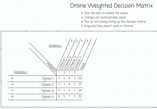 In this article we will be exploring 3 Free Weighted Decision Matrix Calculator Websites that will help you to fill-up the options, factors, weights and more online and help you to take correct decisions without spending a lot of time and effort. So, let’s get started.