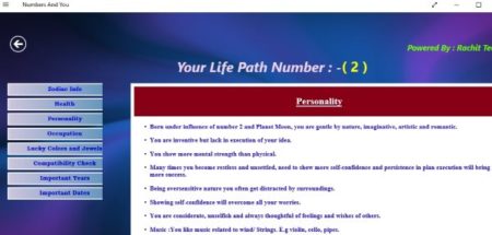 Out of the 7 apps that I found most of them tell you a little bit of detail about the number readings. But couple of them are just calculators which tell you what your number is. There is lot of information that comes up just with your name and date of birth, like your name number, your birth number, lucky numbers, etc. Let’s look at these 7 free Windows 10 numerology apps below to know your numerology readings.