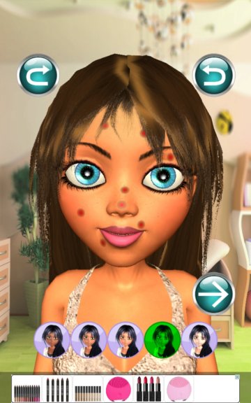 You start off with a model that has zits, bad complexion, no makeup. Then you apply face masks, washes, blush, the works. 4 different models are available for choosing. Use the bottom toolbar to access your makeup kit.
