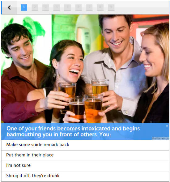 Can You Pass an Anger Management Test? by Playbuzz has a total of 9 questions to test your anger level. It is an interesting test to give. It shows you pictures related to the questions it asks, which makes it interesting and relatable. With the questions, you get different options in which you’d behave in certain situations. Choose the options that suit you the best.