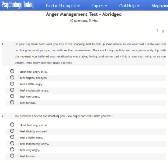 In this article, I will tell you about some of the best anger test websites that you can make use of. These tests ask you several questions that you need to answer. All you need to do is, answer the questions honestly. Based on your answers, these tests provide result telling if you may need to get help or not. Some of these websites also provide suggestions based on your result.