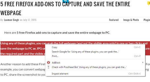 What this extension does is it checks the grammar, writing style, statistics (word count) and it also automatically checks the selected text online for plagiarism. Checkups are started by selecting the text that you want to check, right clicking and then selecting the “Check with Proofread Bot” option from the right click context menu.