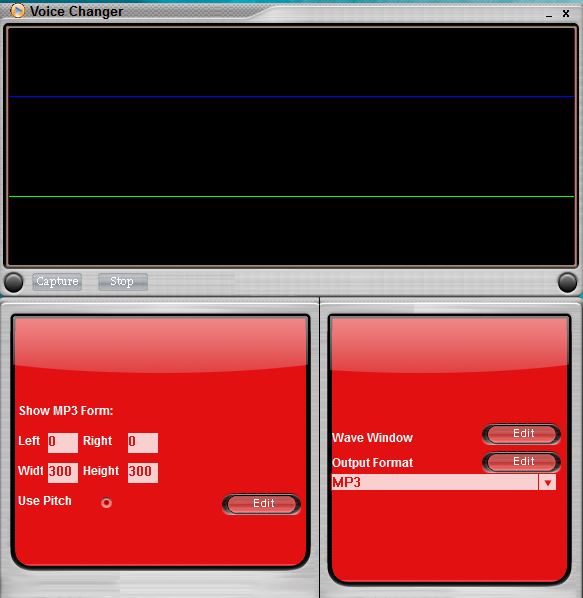There are also no presets or anything like that. Just a slider that lets you change the voice pitch to sound either very squeaky (child) or very low (adult man). Use the settings down below to tweak the voice effect and the output format. Supported output formats include MP3, WAVE and WMA.