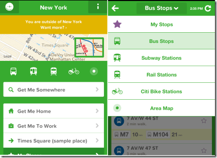 The app has two additional feature for Bus Stops and City Bike Stations. While searching for Bus stops, you can also search for any particular bus by tapping on Find A Bus option. You only need to enter the bus number to search. On the other hand in City Bike Stations option, the app displays the number of bikes available for rent on each bike station along with the total space available.