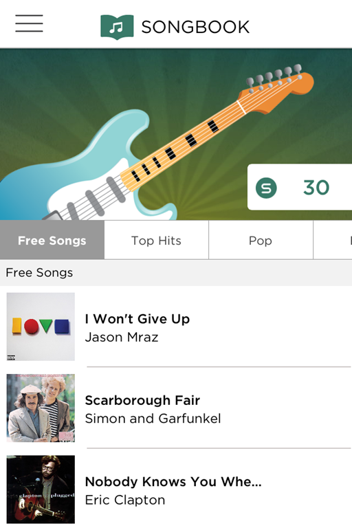 Guitar! by Smule is the first guitar app for iPhone in the list. This is one of the best apps for playing guitar. The app lets you play guitar either in Freestyle or on recorded songs. In Freestyle, you can play any tune of your choice while in the second way you have to play the tune of the song which is being played by the app. You can also save the tunes played by you. The app does give a brief tutorial to explain you how to play the tune on recorded songs. You receive Smule coins on successfully completion of the tune. The app has 3 songs in free version in the Songbook section while the rest of the songs can be unlocked by either using Smule coins or by upgrading to paid version.