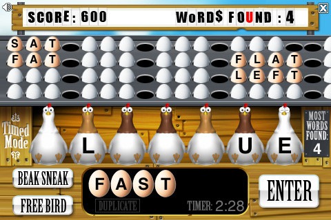 Chicktionary Lite also offers two types of modes. One is Speed Play mode in which you have to find the maximum number of words in 2 minutes time. And the another one is Long Play traditional style mode. In the long play mode, you have to set a goal for 2 minutes and after that there is free time to explore the words out of these seven letters. Chicktionary Lite is a good educational iPhone app that will help the child master the English language with fun.