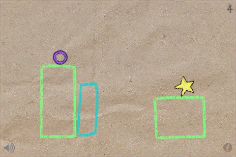 The objective of this iPhone app for kids is to get the blue circle ball to the yellow star. You have to design a full path or projection from point A to B and then run that design successfully to the level completed.