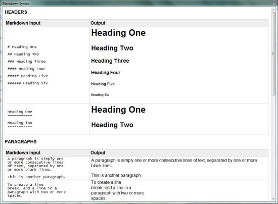 You can press “F1” to open the help file of CuteMarkEd. This file lists the Markdown syntax supported by this free Markdown Editor. You can refer these syntax to apply formatting to your text while writing in CuteMarkEd.