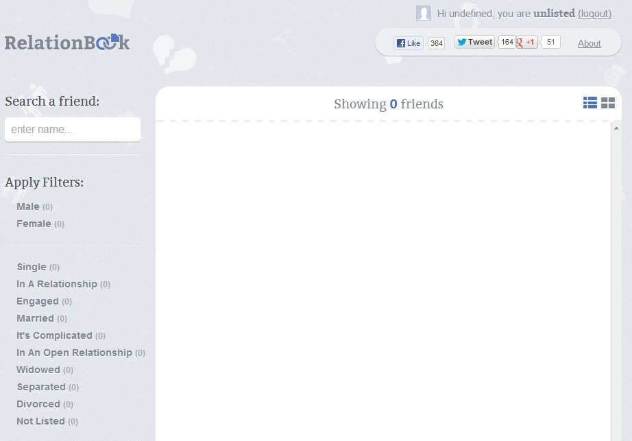 The last group isn’t really a relationship status, but it will help you weed out those who don’t have relationship status clearly set in their Facebook profile. Before you start doing anything you’re gonna have to setup your RelationBook account, which is just few clicks away.