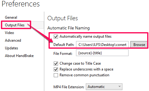Step 1: From its software preferences (Tools>>Preferences), turn on the “Automatically name output files” option and specify the “Default Path” i.e. where your compressed and converted files will be stored.