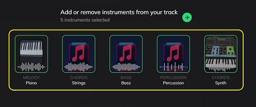 9. To Add or Remove instruments from the track, click on the ‘Edit’ button beside Instruments. All the available Instruments in the present track will be displayed and you can enable or disable anyone by clicking on them.