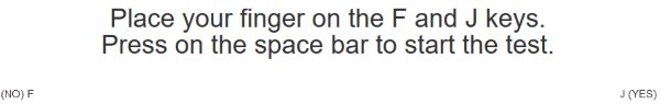 You will be shown a screen like the one above. Just a reminder to press F for no and J for yes. You can press the space bar when you are ready to start the test. The questions would appear on your screen in the below shown format.