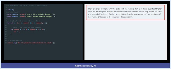 4. Wait for a couple of seconds while the AI algorithms process and review your code.