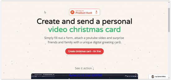 Greety is completely free and easy to use tool to send online Christmas greeting cards. You can use it for creating Christmas greeting cards with videos for your loved ones. So check it out.