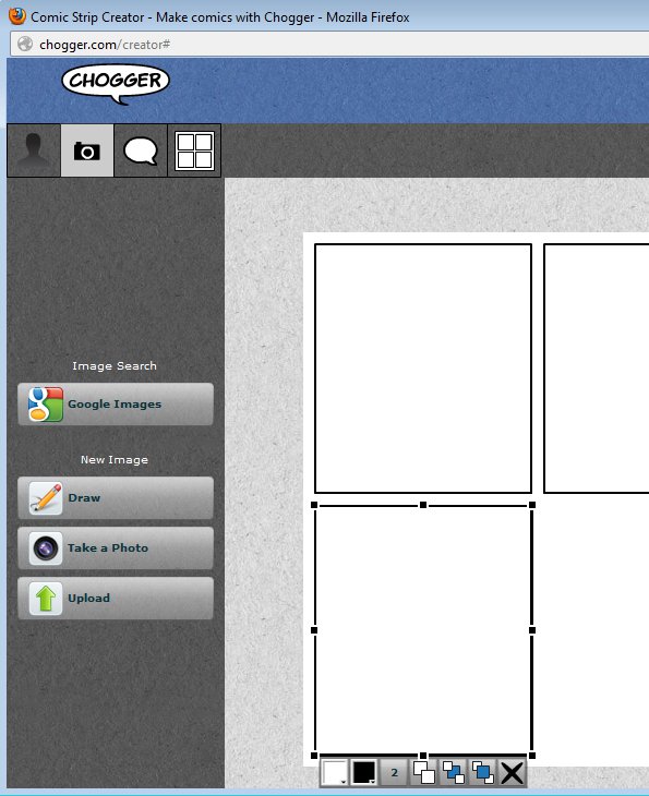Chogger is a free online comic creator which you can use to both create and publish comic books for the entire world to see. Several different comic book layouts are available for you to choose from, 2 by 3, 1 by 2, 2 by 2, and so on.