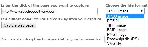 Web-Capture.Net is not so nice looking, but actually very nice website to take screenshots of full web page by providing only URL. Very interesting feature of this website is that it supports many formats, even PDF format. So, even if you want to convert your URL to PDF, you can use this website. Apart from PDF, other formats that this website supports are: JPEG, TIFF, BMP, PNG, and even Postscript (PS), and SVG format. It lets you download your screenshot in the format that you specified, or download a zip archive of that. It does not provides size option and always provides full webpage screenshots only; which is exactly what you are looking for if you are on this article :)