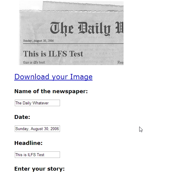 To create a newspaper clipping, you only have to mention details like date, name of the newspaper, and headline. After that, you can start writing the entire story in the provided column. Once you are done writing, hit the generate button and your clipping will be ready for download. The website suggests not to include real newspaper names.