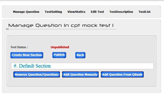 - Click on the MYTEST Tab, then you are directed towards a page which has links to create a test.
