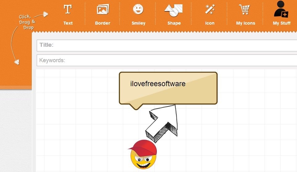 Once, students have logged in to their account, using the assigned username, they can start creating the project by clicking on the Enter Project button. They can use tools like emoticons, add text, shapes, icons to create the project. They can also upload images from their computer. A title and keywords for the projects also have to be mentioned.