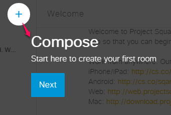 After entering your room, click on ‘+’ button. It will help you to invite your team members, using their email addresses, and join your room. Your team members also need to create an account with Project Squared to join your room.