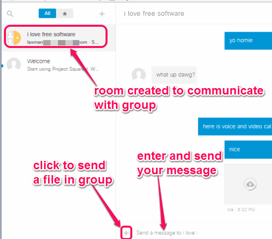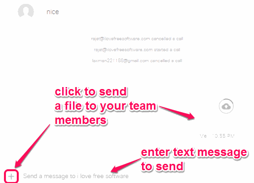 Apart from this, it also lets you chat with your team. Thus, you can make video and voice call in a group, chat with team members, and share files together. You and your team members will be able to download the uploaded files. Whether it is a video file, exe file, audio file, image file, etc., you can upload it to your group.