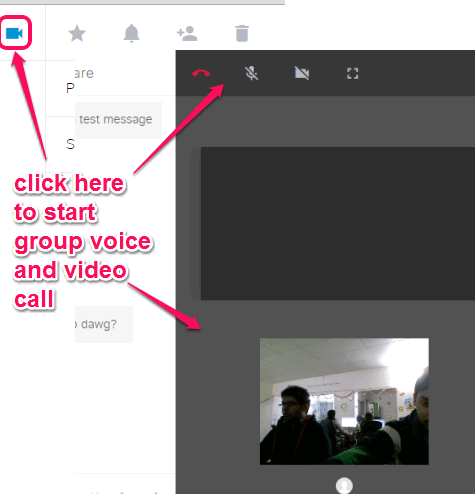 To start a voice and video chat, click on the icon available on top right part of your room. After this, you need to allow your microphone or webcam, or both, to start voice or video call. Make sure you and your friends/team members are on Firefox browser to use this feature.