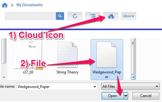 To upload something to an online folder, click on the folder to open it and click on the “cloud” icon to start uploading files to the online virtual folder. You can also choose multiple files while holding down the “CTRL” key and clicking on the files you want to upload.
