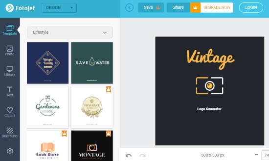 FotoJet is an online vintage logo maker. The site can be used to make graphic designs, collages, edit photos. You can also create social media posts, flyers, posters, business card, magazine cover, etc.