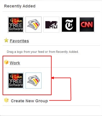 On the right hand side, you will see logos of recently added services which you can click upon anytime to view all articles of that website. Apart from that, you can also create groups and organize your feeds to view articles from multiple publishers with a single click.