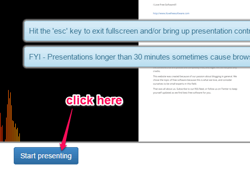 Step 3: To start the recording, click on Present button. After this, it will prepare all the slides, and ask the permission to access the mic. After this, you need to tap on start presenting button to begin the recording process. Now, you can turn slides using left mouse button and with arrow keys. Along with this, you will be able to record your audio.