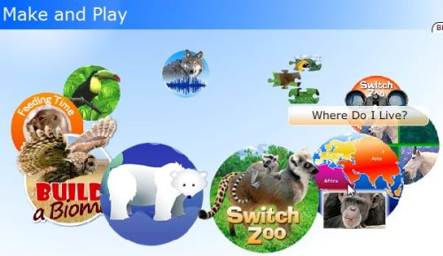 Make and Play: This is the most fun section of the website. This is where you can make new animals, play animal games, etc. When you click this link, you’ll be taken to a page where you have to select an activity out of the activities given. You will find the activities displayed in a circular format, as can be seen in the screenshot below.