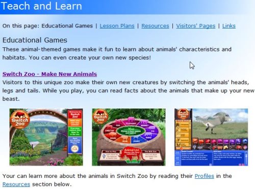 Teach and Learn: In this section you can play educational games, explore the resources section for more information on various animals, take a guided lesson on how to make a new animal, etc.