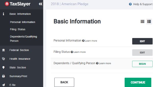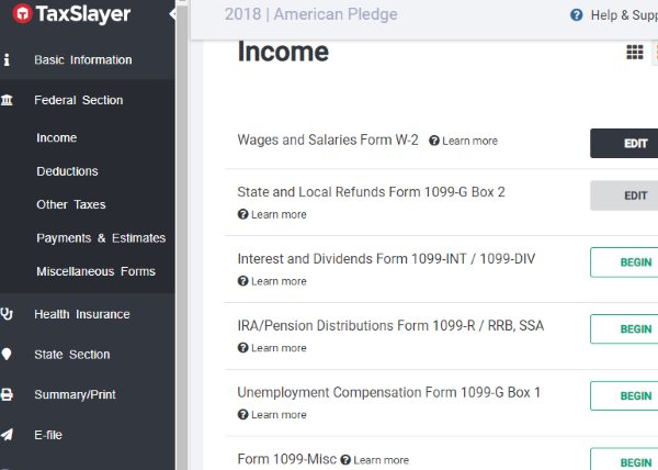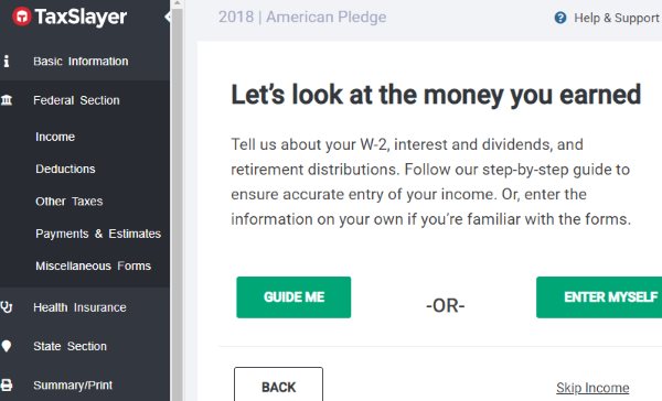 TaxSlayer has a nice and easy to follow website for filing your taxes. The website is trustworthy as it is a part of the IRS free file alliance. The website uses simple language to ask questions and offers help when you do not understand something. Just follow the questions being asked to file your tax return this year.