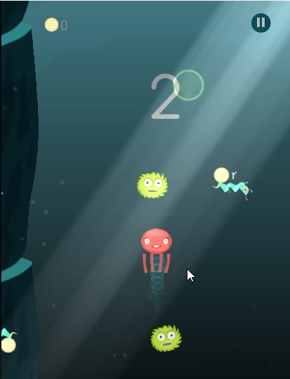 The game play looks like the screenshot above. Where you have to navigate the cute looking octopus through the ocean without hitting or colliding with any other sea creature. If you hit a sea creature its game over for you. A single tap or click will make the octopus dash past the sea creatures in speed.
