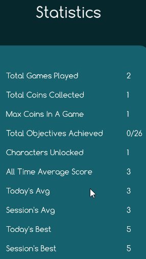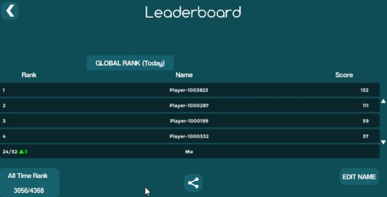 The game statistics can be viewed as shown above. You can view the total number of games you have played, total number of coins you have collected, number of objectives achieved, average score, etc. Similarly, you can also view leaderboard rankings, as can be seen in the screenshot below.