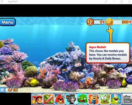 AquaFish is a free Windows 10 fish aquarium game where you have to take care of fishes in your aquarium. The app lets you take care of your very own fish aquarium by feeding the fishes, decorating the aquarium, etc. You can earn points and medals for taking care of your fish. Also, looking at the fish swim in water can prove to have a healing and relaxing effect.