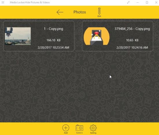 Windows 10 Media Locker is a free app to hide various media files like videos, photos, audio, and notes. The app can only be opened using a pin and if you don’t know the pin to the app you will not be able to access the media hidden inside it. If you are using a computer at home of office which can also be accessed by other people, then you might want to protect/hide your data by locking it. The app will let you do that easily.