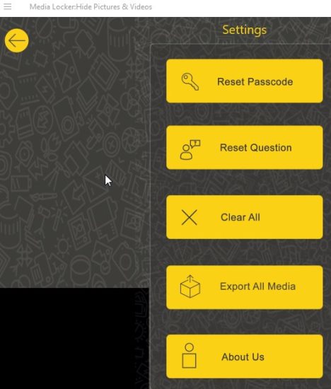 In settings you can reset your passcode, reset your security question, clear all data from the app, and export all the media files from your device in here.