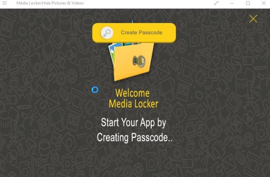 Windows 10 Media Locker can be downloaded from the Windows 10 store or from the link given at the end of this article. When you start this app you will see a screenshot like the one shown below, where you will be asked to set a passcode/pin to begin with.