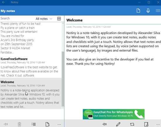 Notiny is a free Windows 10 note taking app with features like OCR (optical character recognition), adding reminders on notes, password protection of notes. The app lets you create text notes, voice notes and lists. You can also synchronize your notes among various Windows devices. Password protect your notes and set reminders on your notes. You can also attach images with your notes. One good feature of this app is that you can attach a scanned image of a document and this app will extract the text from the image to convert it into editable notes, just like a OCR software.