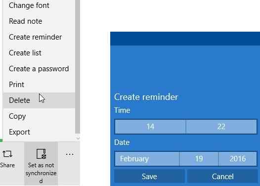 This will open up a window like the one seen in the screenshot above on the right side. Set a time for the reminder, then select a date for the reminder and click on the save button. This will save your reminder for that note. On the set date and time the reminder will pop up on your desktop screen to remind you of your task.