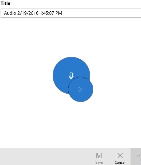 The audio option shown on the top of the window is for speech to text option. You can click this option and start speaking and your speech will be converted to text and this converted text is added to your notes. This speech to text feature is done through Cortana. When you are done adding text to your note, go ahead and click the save icon.