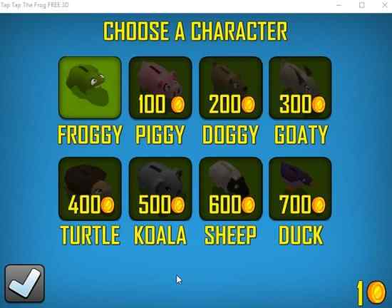 You can choose a piggy, doggy, goaty, turtle, koala, sheep, and duck using the coins that you earned.
