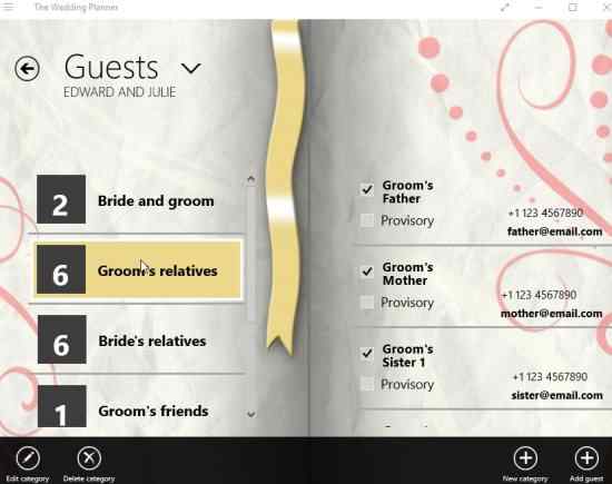 The wedding planner app for Windows 10 is pretty useful as it is quite detailed with the number of things you are required to do. There are so many categories already mentioned that you would hardly need to enter any of your own. Plus you can access it from any Windows 10 device on the go. So use this app if you are organizing a wedding and it will sure take care of even the smallest detail which you might otherwise forget.
