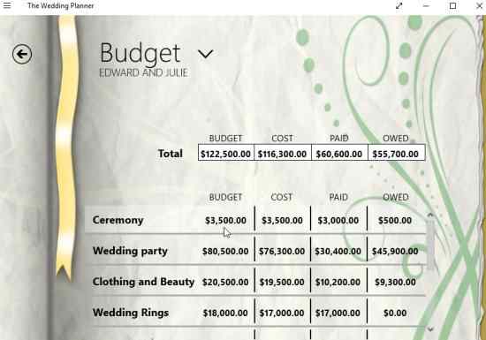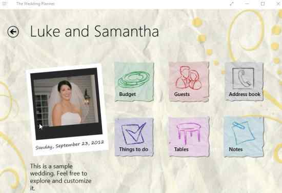 Features of this Windows 10 Wedding Planner app: